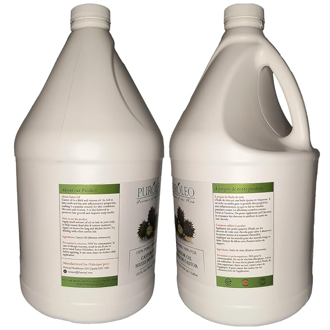 PUROLEO Castor Oil 128 Fl Oz/3784 ML (Made in Canada) Hair, Lash, Beard, Eyelashes & Eyebrow Oil Jamaican Black castor oil for thicker brow longer lashes, Make eyelash serum, hair serum for dry hair