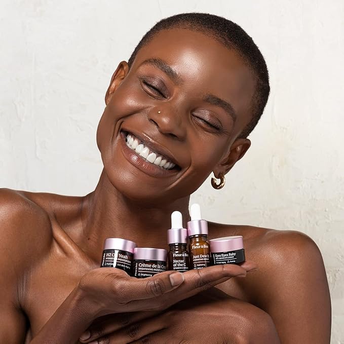 Fleur & Bee Skincare Set, Discovery Set, 5 Deluxe Minis Moisturizers, Serums, Eye Cream | Skin Care Gift Set Vegan & Cruelty-Free | Travel Friendly