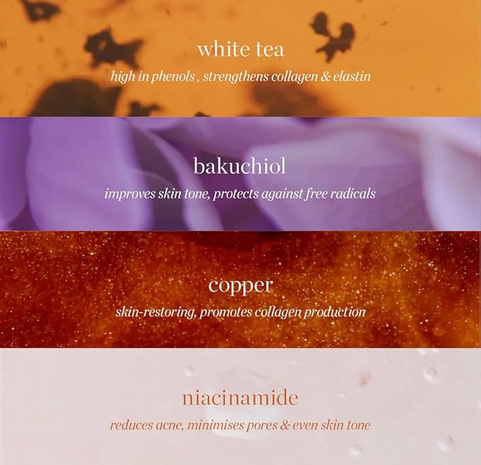 - Special Ingredients : Niacinamide, White Tea, Bakuchiol, Copper