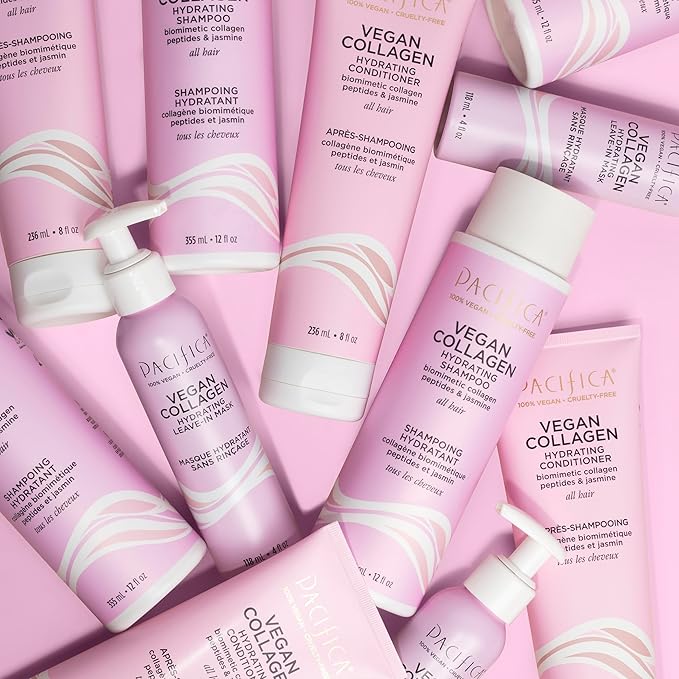 - POWERFUL VEGAN COLLAGEN BLEND – Infused with a potent blend of plant-based ingredients that restore and protect. Fermented vegan collagen peptides help fortify strands and improve elasticity from the inside out; Pro-Vitamin B5 (panthenol) seals the hair cuticle to smooth flyaways and frizz, protecting against split ends. Avocado oil delivers rich omega fatty acids to deeply moisturize and help repair damage. Jasmine extract supports lasting hydration and a healthy scalp. Together, these actives transform dry, brittle hair into smooth, lustrous hair full of life.
