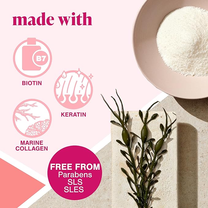 - Includes a proprietary complex that contains seaweed, marine collagen, biotin, and keratin that delivers nourishing hydration without weighing hair down