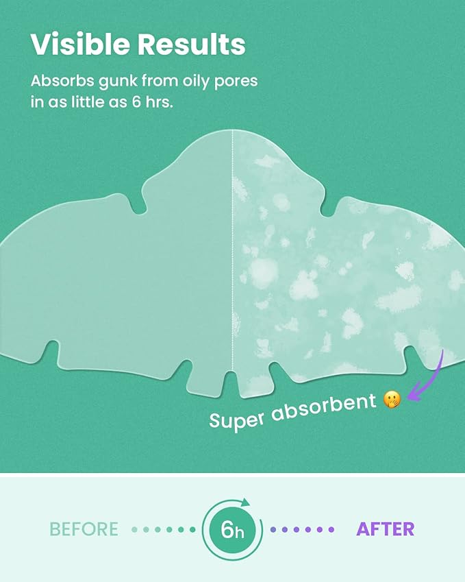 - ⏱️ VISIBLE RESULTS - Effectively absorbs excess sebum and impurities from pores. Hydrocolloid patch turns white when oil and buildup are fully absorbed in just 6-8 hours.