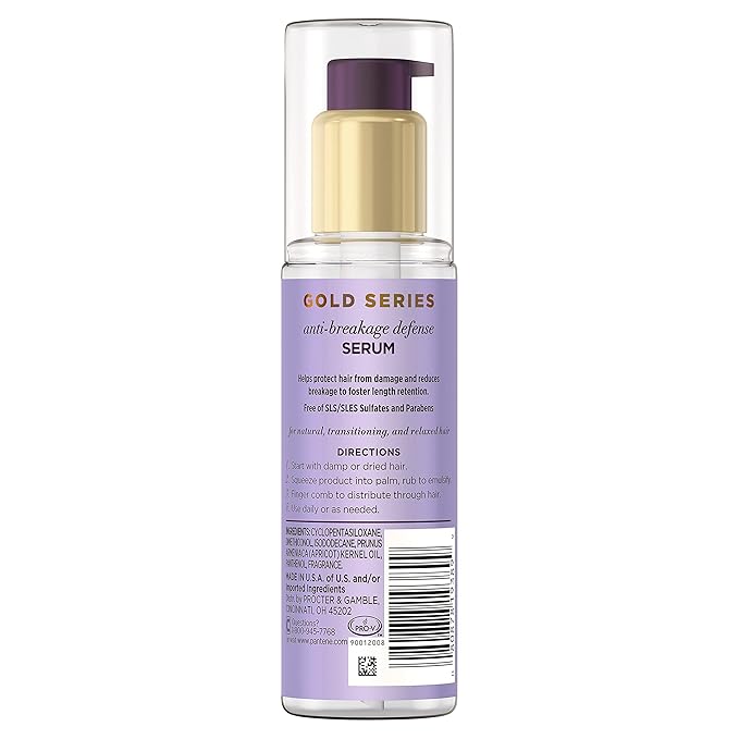 Pantene Gold Series New Lengths Anti-Breakage Defense Serum, Infused with Apricot Oil, Protects & Strengthens, for Natural, Textured, Curly, Coily Hair, Sulfate Free, 3 Fl Oz (Pack of 2)