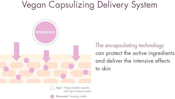 - 🍇Vegan Capsulizing Delivery System: The encapsulating technology protects the active ingredients and delivers the intensive effects to skin