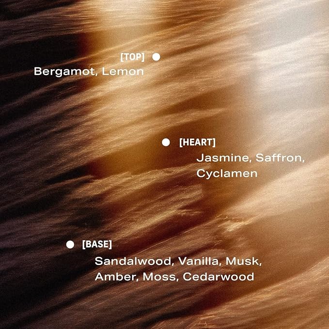 - Top - Bergamot, Lemon. Heart - Jasmine, Saffron, Cyclamen. Base - Sandalwood, Vanilla, Musk, Amber, Moss, Cedarwood