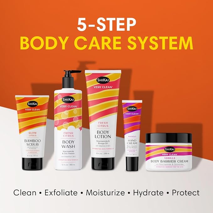 ShiKai Very Clean Bamboo Body Scrub (Glow Citrus, 6 oz) | Gentle Hydrating & Exfoliating Skin Cleanser | With 5 Fruit Complex & AHA Acids