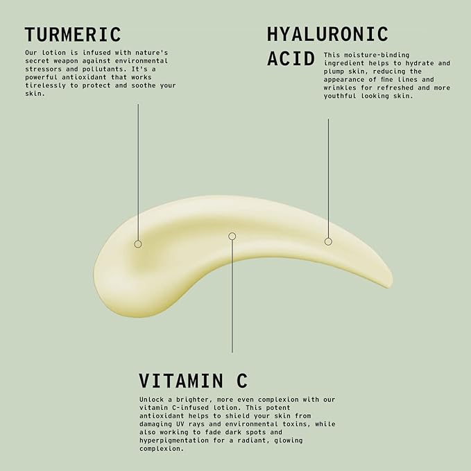 - Unique Natural Blend: Our turmeric lemon lotion contains a unique natural blend of turmeric extract, vitamin C, and hyaluronic acid to nourish and revitalize your skin
