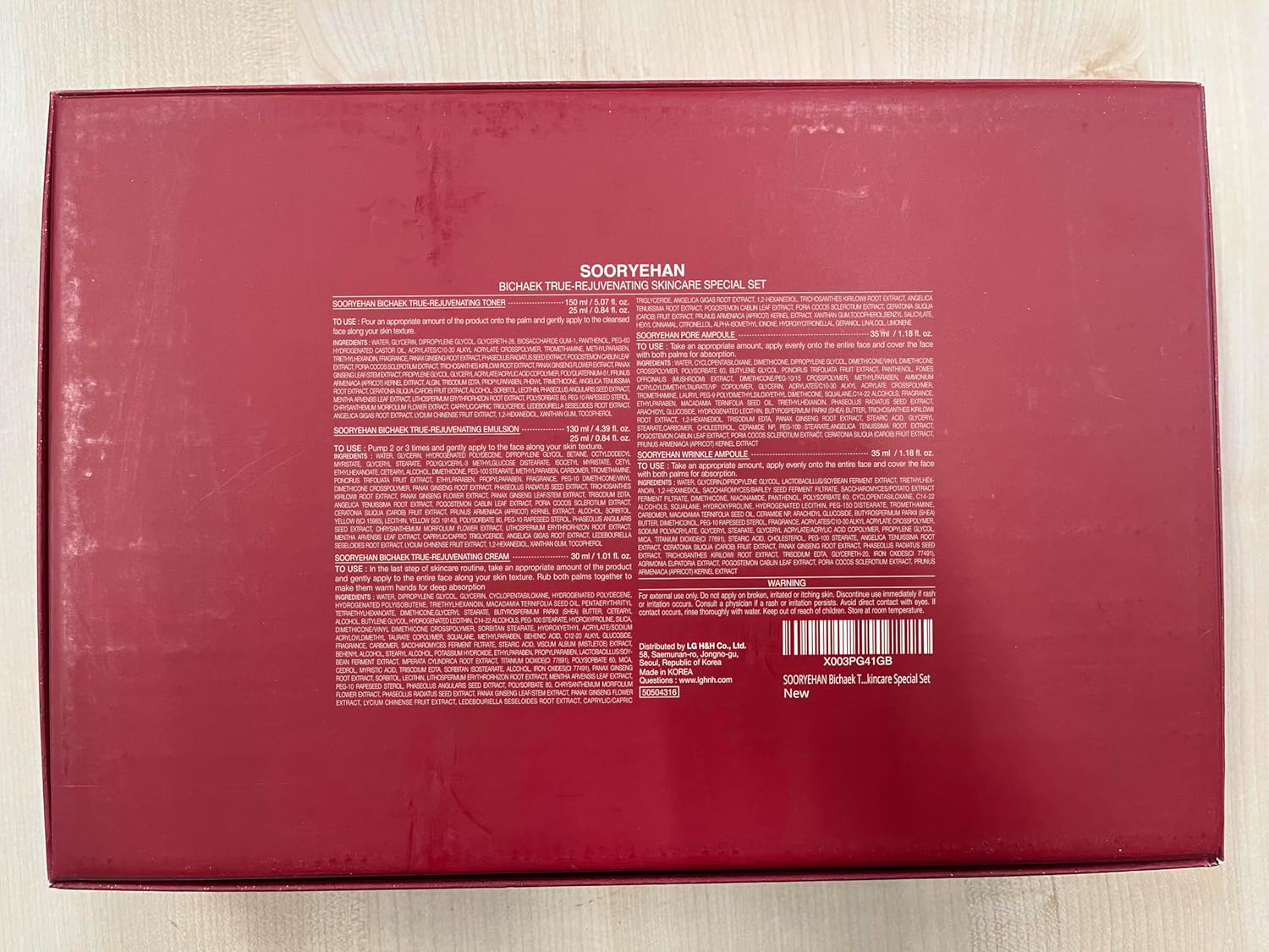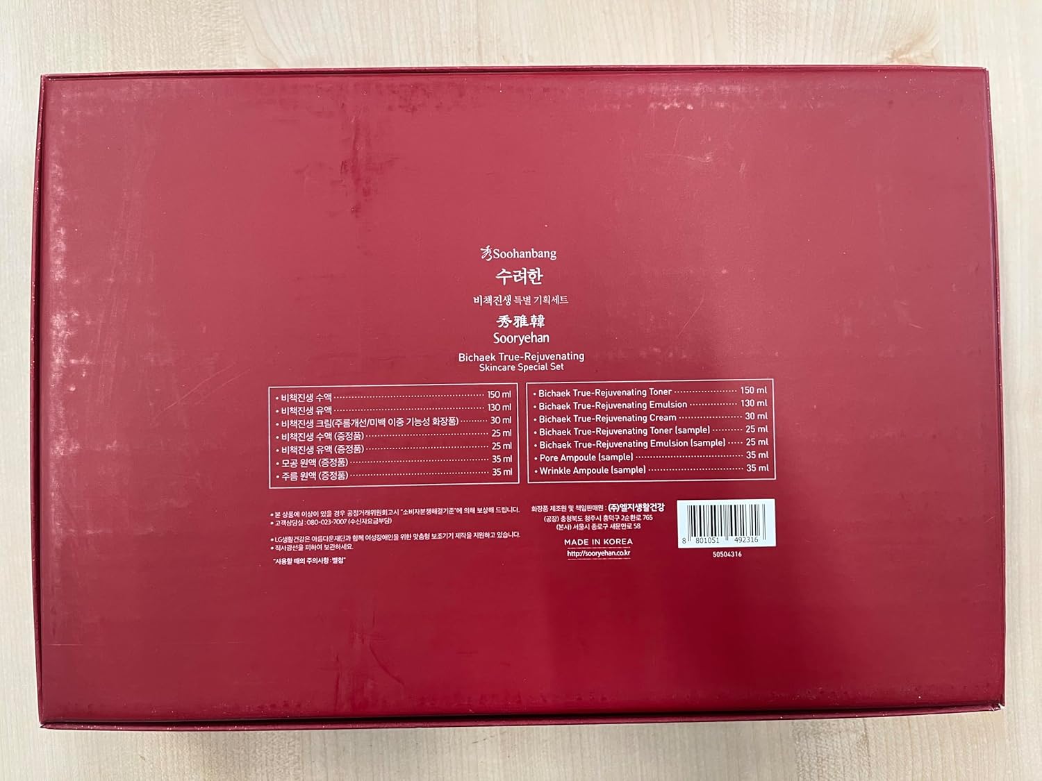 - BICHAEK TRUE-REJUVENATING SKINCARE SPECIAL SET - Bichaek True-Rejuvenating Toner (150 ml/5.07 fl oz + 25 ml/0.85 fl oz), Bichaek True-Rejuvenating Emulsion (130 ml/4.4 fl oz + 25 ml/0.85 fl oz), Bichaek True-Rejuvenating Cream (30 ml/1.01 fl oz), Pore Ampoule (35 ml/1.18 fl oz) & Wrinkle Ampoule (35 ml/1.18 fl oz)