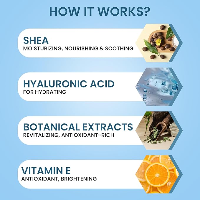- 🔄 ANTI-AGING FORMULA: Contains Hyaluronic Acid and Shea Butter to smooth wrinkles and fine lines, promoting youthful skin.