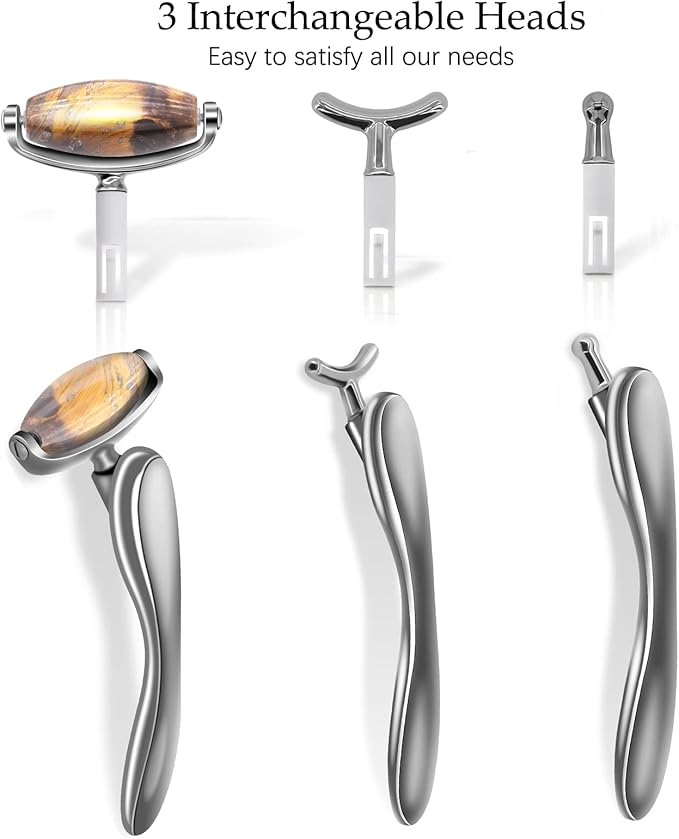 I·B·N G Jade Face Roller, Facial Tools Face Rollers for Women, Face Massage Skin Care Beauty Tools with 3 Interchangeable Heads (Cat Eye+Black)