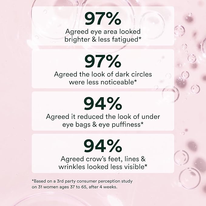 - Brighten and Revitalize: Our unique seaweed blend of Undaria and red algae brightens the delicate skin under the eyes, erasing signs of fatigue by minimizing crow’s feet and under-eye bags. Our plant extract blend works to improve the appearance of dark circles, while peptides smooth fine lines and wrinkles. Clinically tested quinoa extract further reduces under-eye puffiness, and Hyaluronic Acid provides essential hydration.