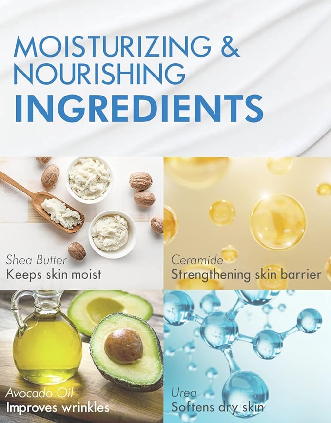 - ENRICHED WITH PURE PLANT-BASED EXTRACTS: Our foot moisturizing mask contains Shea Butter, Avocado Oil, Centella Asiatica, Diospyros Kaki Fruit Extract, and Urea. These natural ingredients provide comprehensive foot care, from moisturizing and exfoliating to soothing and strengthening the skin barrier.