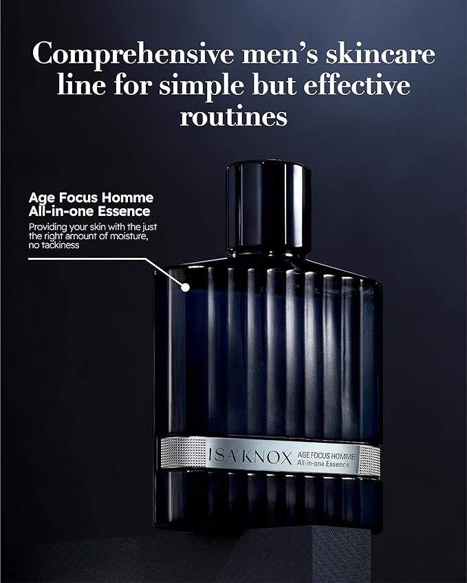 - ISA KNOX AGE FOCUS HOMME ALL-IN-ONE ESSENCE (120ml/4.1fl oz) provides the ultimate solution for a comprehensive and effective daily skin care for men by forming a refreshing and moisturizing barrier, maintaining long-lasting hydration for your skin.
