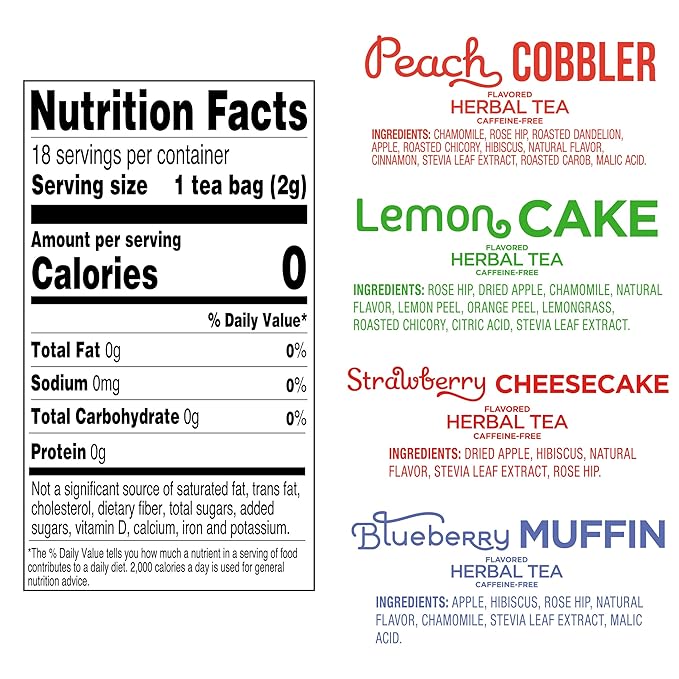 - BREWING YOUR TEA – Enjoy our dessert tea without having to worry about the ingredients. Our tea bags include herbal teas bursting with flavor, our new naturally flavored Sweet Temptations teas are deliciously rich and contain zero calories — the definition of guilt-free indulgence! Enjoy the full assortment of flavors!