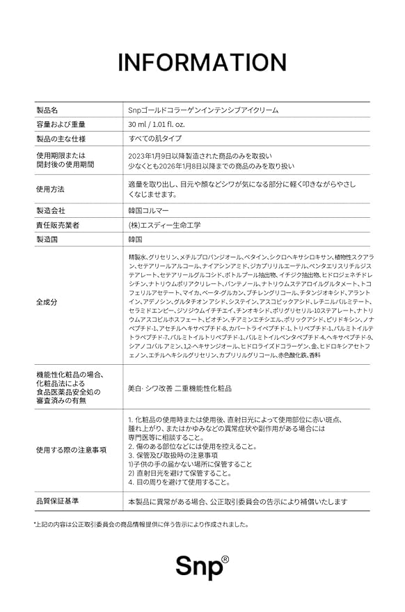 SNP [K Beauty 24K Gold Firming Intensive Collagen Eye Cream