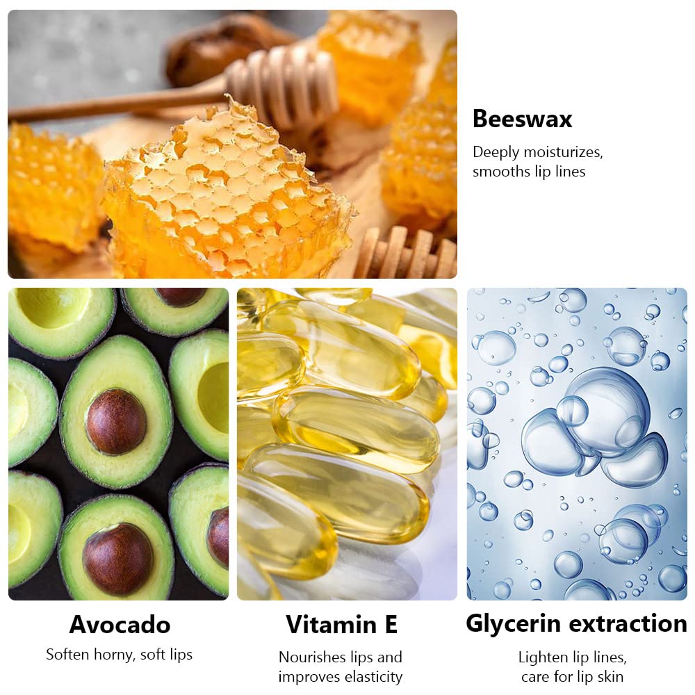 - ❤【Features】Waterproof, Long-lasting Moisturizer, Made with Strawberry,beeswax, plant extract, olive oil, 6 kinds vitamin E to keep your lips hydrated.