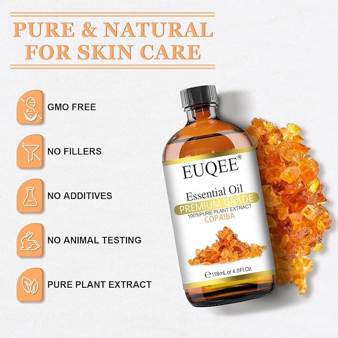 Copaiba Essential Oil 118 ml Pure Copaiba Oil Essential Oil with Dropper for Diffusers, DIY Soap, Candle Making, Aromatherapy (4fl oz)