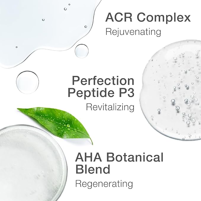 - Active Ingredients : ACR Complex, Perfection Peptide P3, AHA Botanical Blend, Shea Butter, Urea, Sodium Hyaluronate, Vitamin A, Vitamin E, LACTIC ACID ACR Complex, Perfection Peptide P3, AHA Botanical Blend, Shea Butter, Urea, Sodium Hyaluronate, Vitamin A, Vitamin E, LACTIC ACID