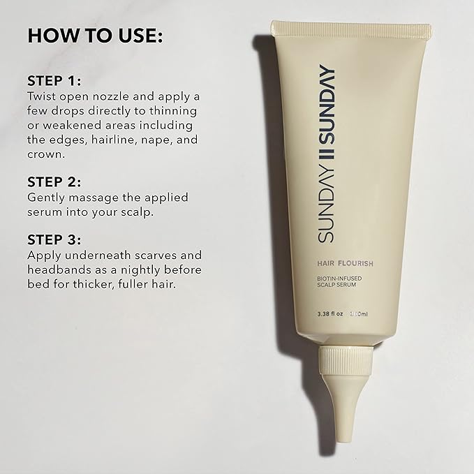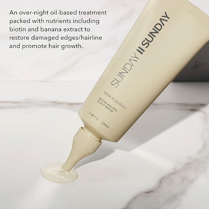 SUNDAY II Hair Flourish - Award Winning Nourishing Overnight Oil-Based Serum for Thicker, Visibly Longer Hair - Keeps Hair Looking, Feeling and Smelling Fresh - 3.38 fl oz