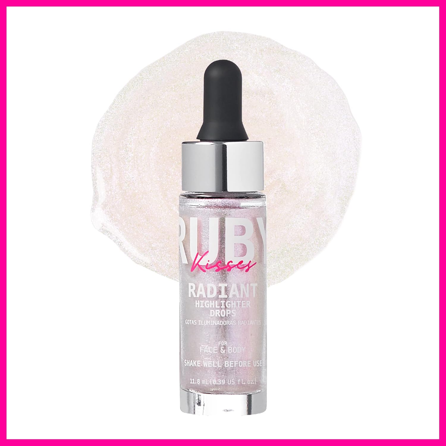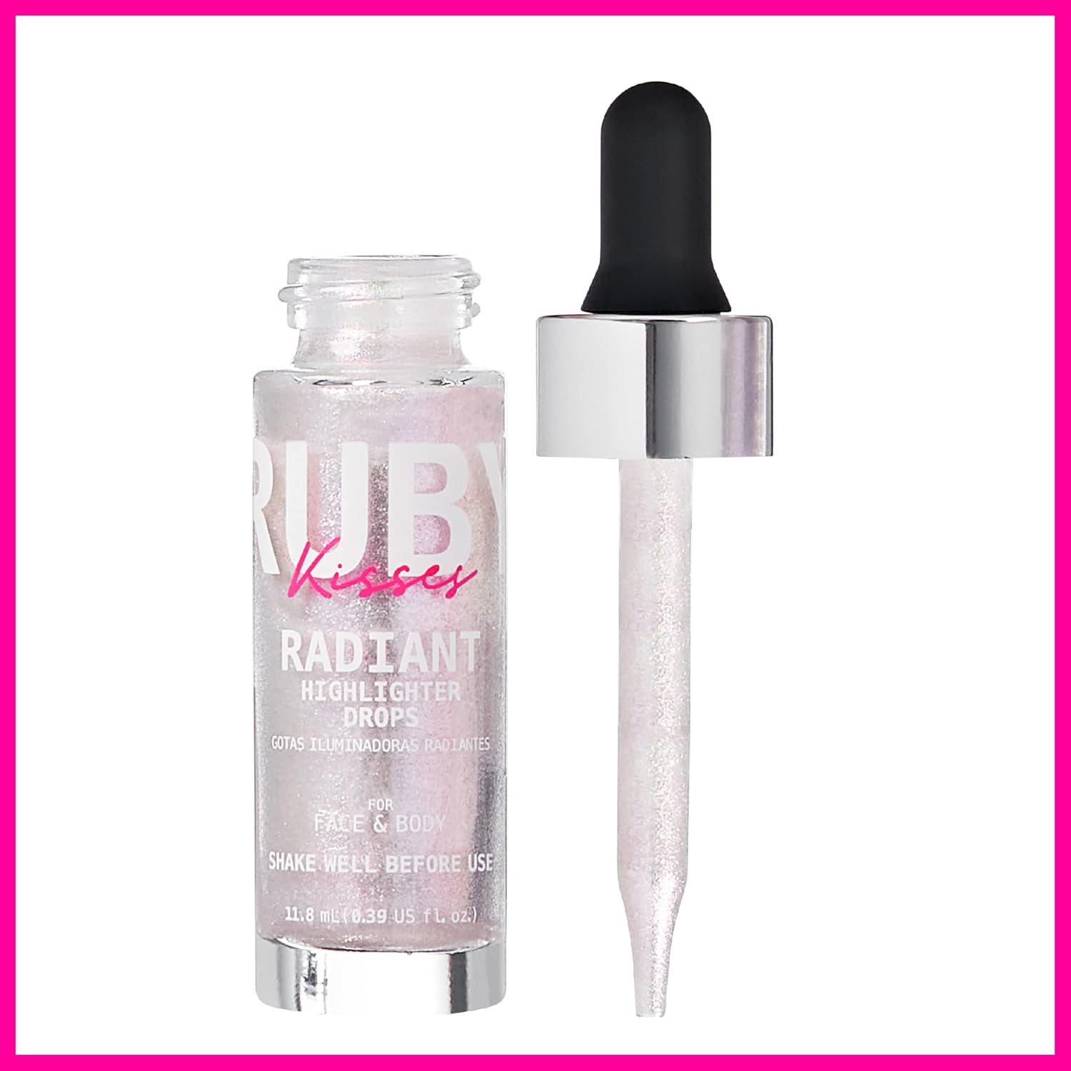 Ruby Kisses Radiant Drops, Shimmer Liquid Highlighter Makeup, Smooth Illuminator for Face Body, Natural Glow Dewiness Glitter for Skin (UNICORN)