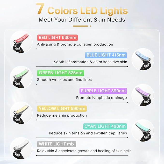 - Skin Care for Face and Neck - This multifunctional face neck massager has 7 LED light modes that can improve various skin problems with persistent use in daily skincare routine.