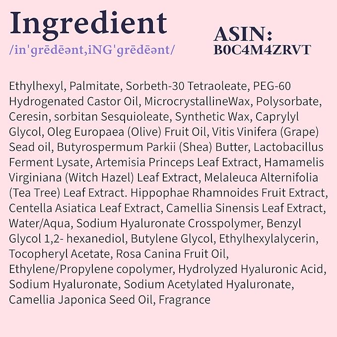 - SKIN-LOVING INGREDIENTS: Our Korean cleansing balm is enriched with natural, skin-loving ingredients including Shea Butter for deep moisturization, Camellia Oil for detoxifying benefits, and Hyaluronic Acid for intense hydration.