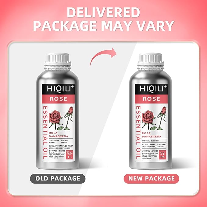 HIQILI 32 Fl Oz Rose Essential Oil, Huge Value Size Undiluted Rose Oil for Face, Skin, Diffuser, Hair