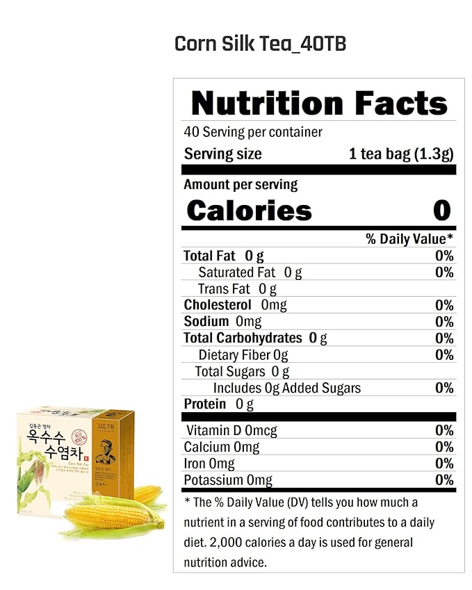 - [Perfect Blending] Made with Corn, Corn Silk, and Brown Rice harvested directly and grown naturally in South Korea. There are no additives and preservatives added throughout the process. Although it may be a less vigorous tea, its subtleness is complemented with sweet undertones and slight hints of earthy.