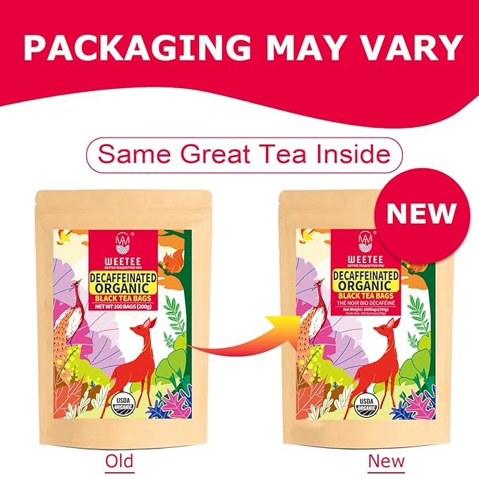 WT WEETEE Organic Decaf Black Tea Bags, Organic Black Tea 100 Count | Smooth & Mild Taste | CO2-Decaffeinated | Resealable Kraft Bag