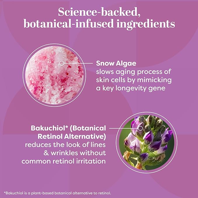 - INNOVATIVE BLEND: Not your average anti aging face cream; patent-pending formula features Snow Algae to slow the aging process of skin cells, Aloe to soothe and deeply hydrate, and botanical retinol alternative Bakuchiol to improve the appearance of skin elasticity and fine lines and wrinkles, revealing a healthier-looking complexion.