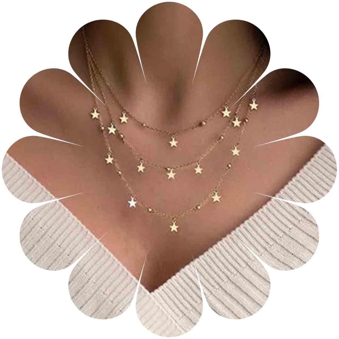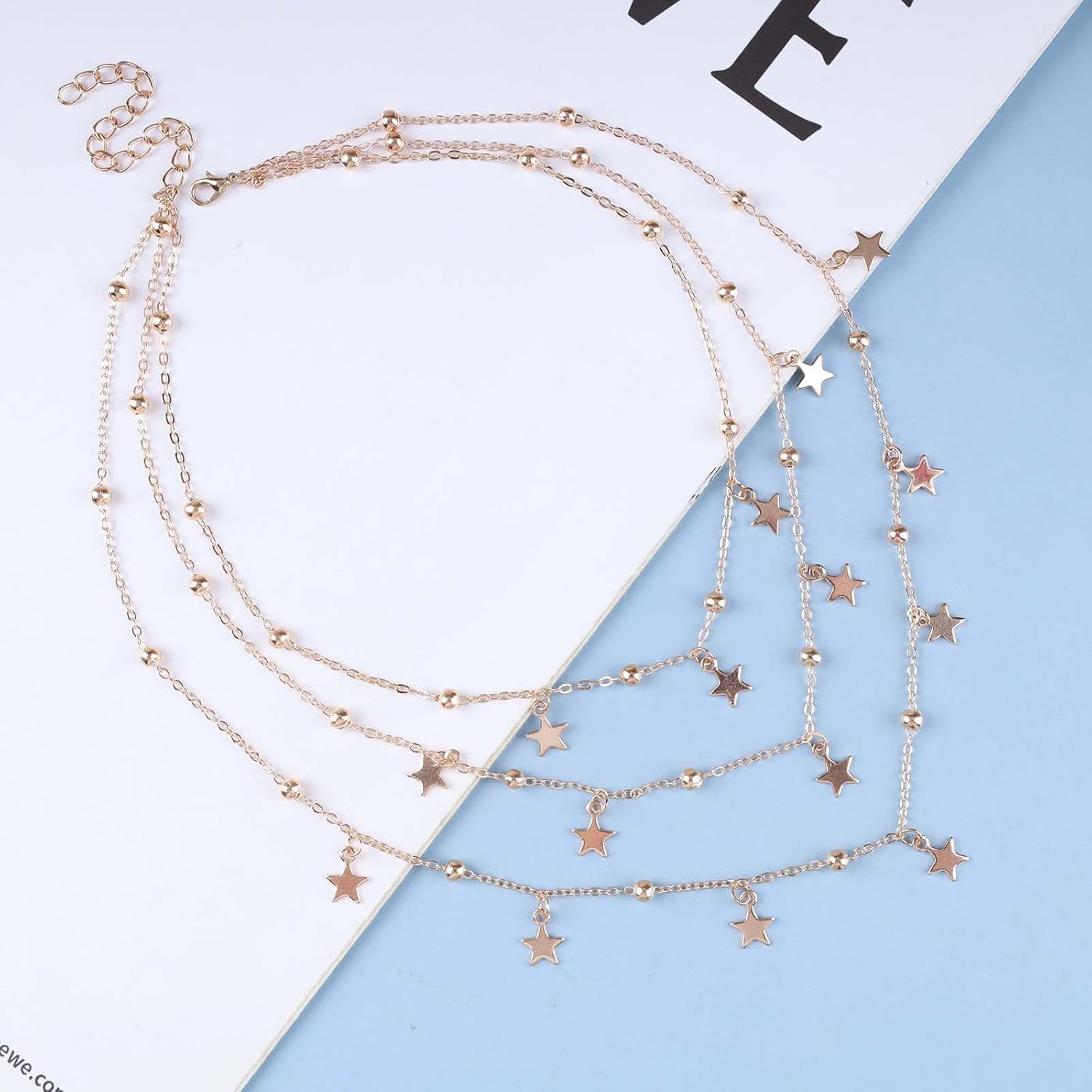 Vintage Layered Star Dangle Necklace Star Pendant Necklace Tiny Star Necklace Gold Bead Chain Necklace Jewelry for Women