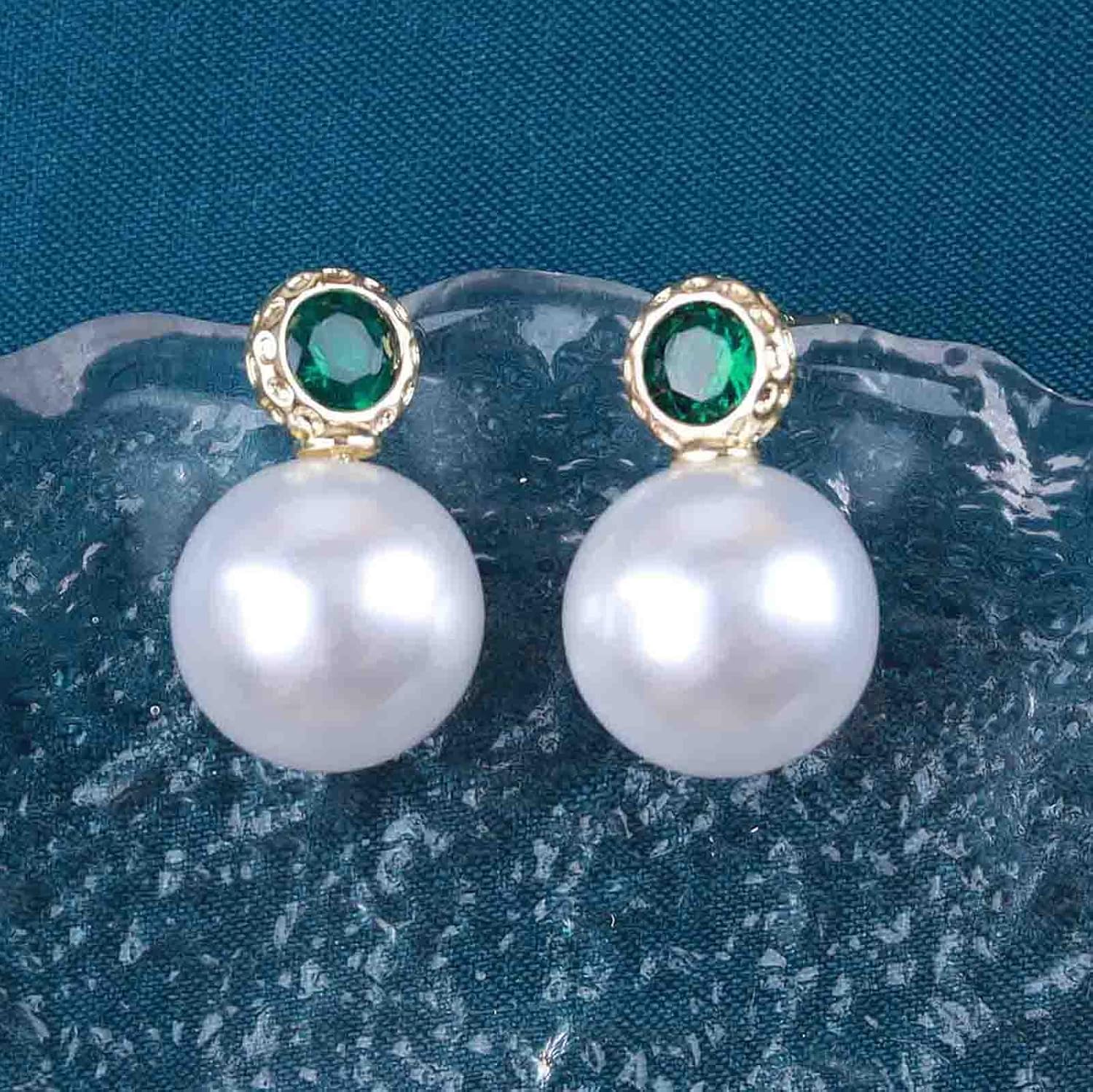 Vintage Emerald Pearl Earrings Gold Pearl Drop Earrings Green Emerald Studs Earrings Rhinestone Pearl Emerald Earrings Jewelry for Women