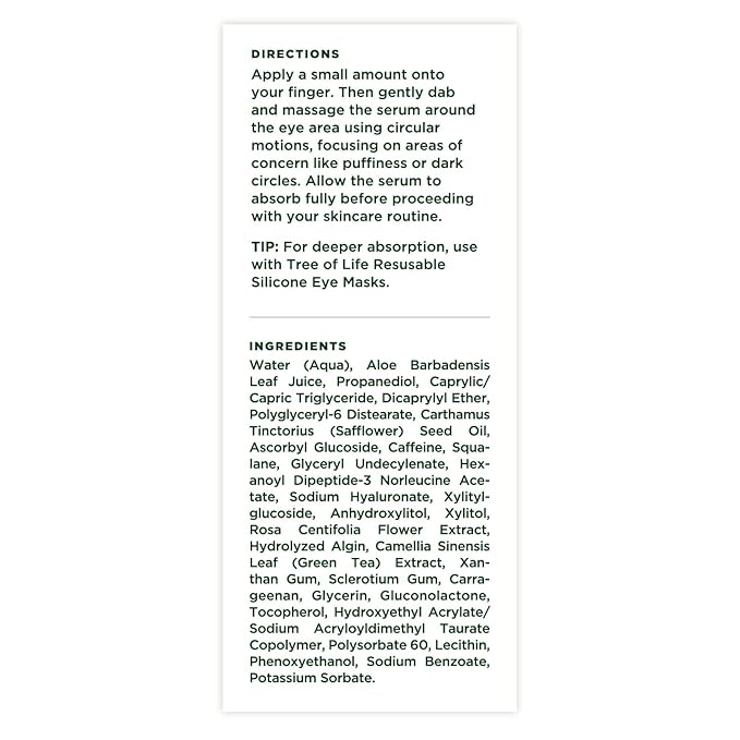 - SIMPLE TO USE DIRECTIONS: Apply a small amount onto your finger, then gently dab and massage the serum around the eye area using circular motions, focusing on areas of concern like puffiness or dark circles. Allow the serum to absorb fully before proceeding with your skincare routine