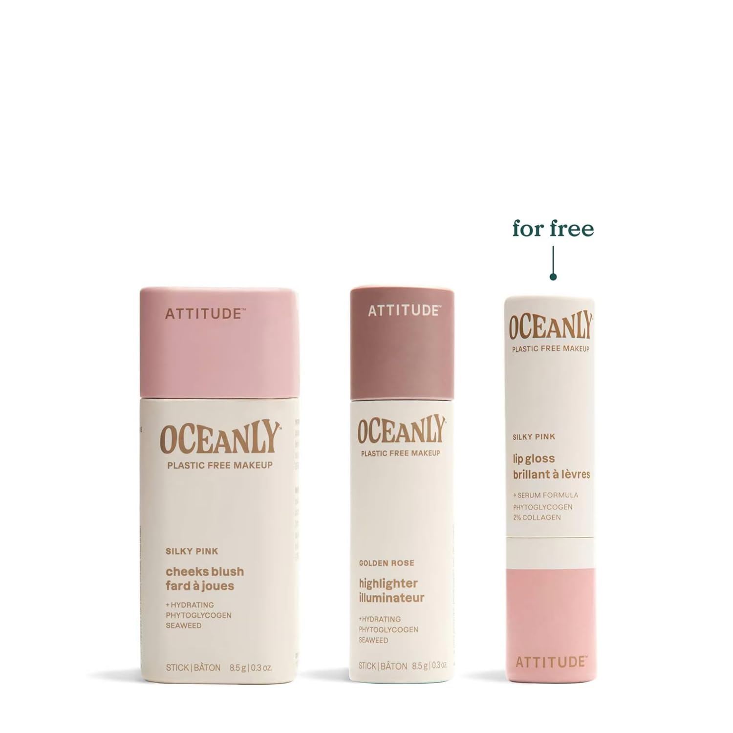 ATTITUDE Silky Pink Makeup Box Set, EWG Verified, Titanium Dioxide-Free, Plastic-free, Plant and Mineral-Based Ingredients, Vegan and Cruelty-free Beauty Products, Set of 3 Makeup Sticks