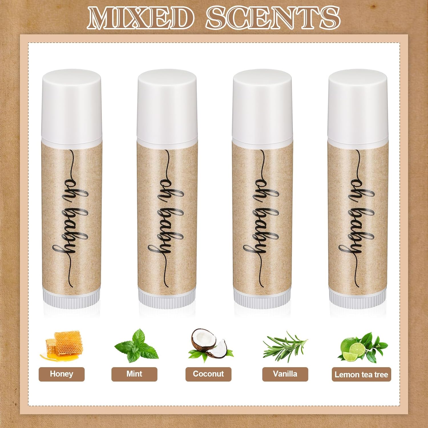 - Moisturizing Effect: these baby shower favors contain moisturizing ingredients that nourish your lips and help prevent dryness and cracking during winter; Whether in the dry climate of winter or in other seasons, these lip balms will provide your lips with a comfortable moisturizing effect