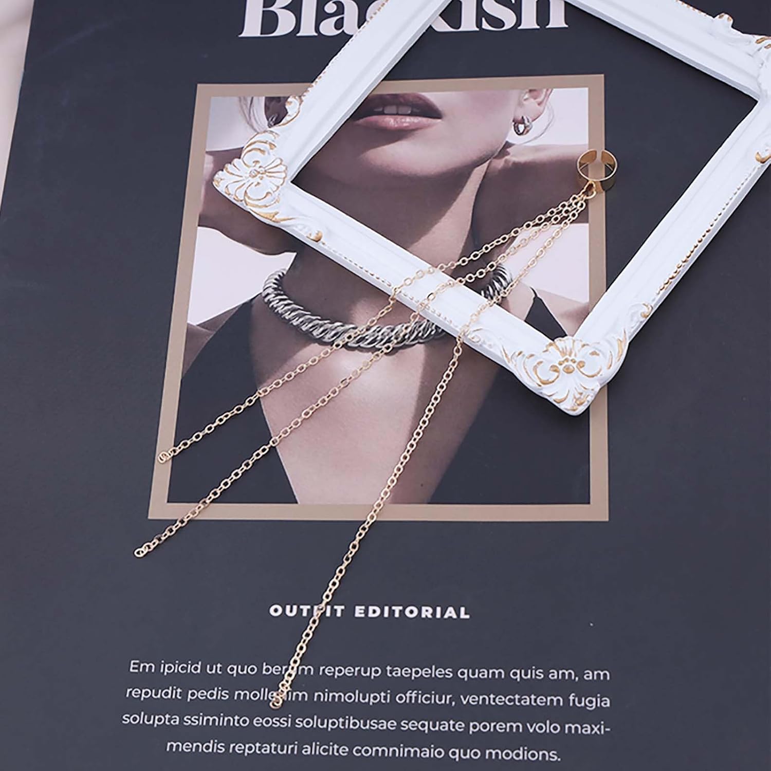 Punk Cuff Chain Dangle Earrings Long Chain Cartilage Earrings Gold Wrap Cuff Chain Earrings Vintage No Piercing Cuff Earrings Jewelry for Women
