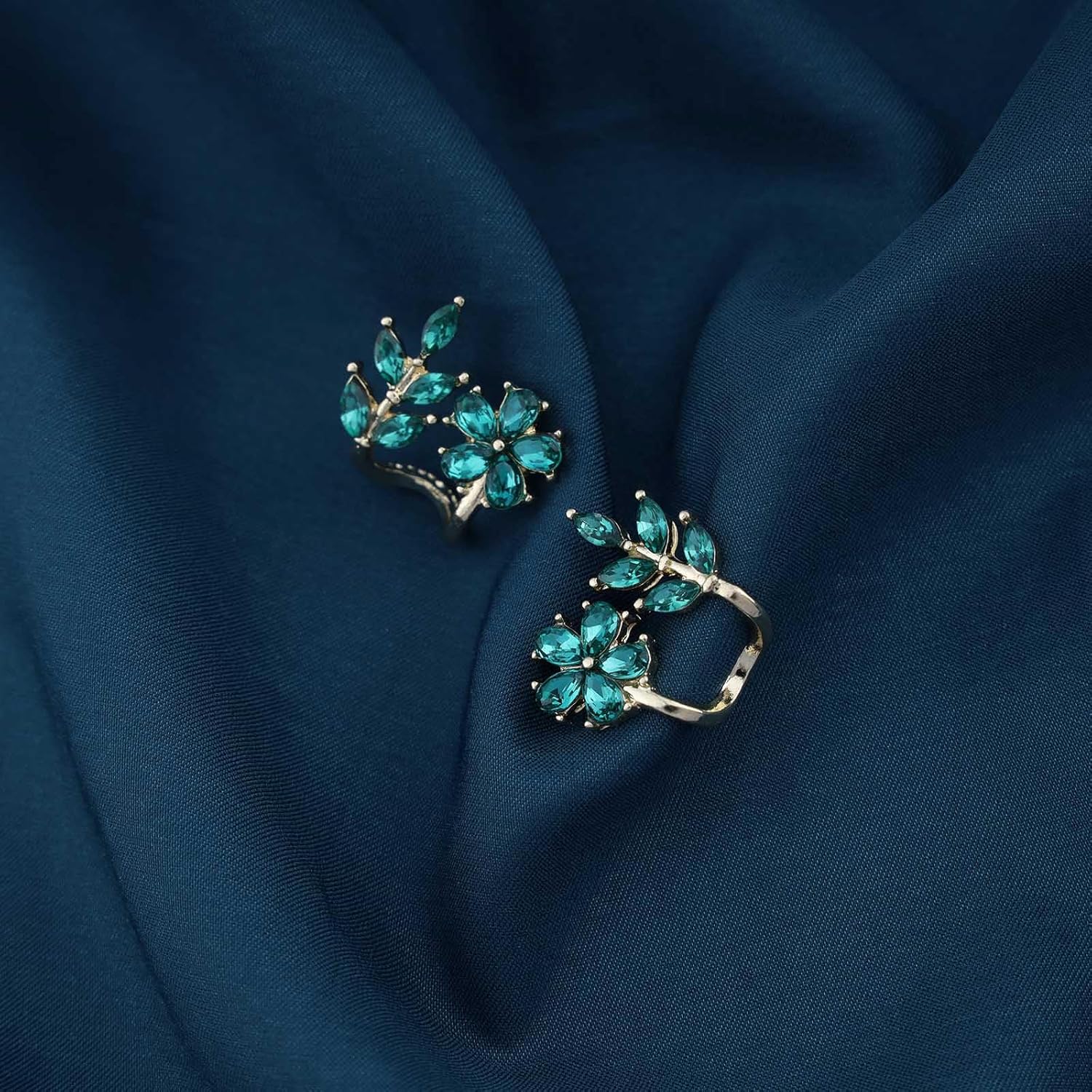 Vintage Emerald Flower Ear Cuff Earrings Green Crystal Flower Earrings Crystal Leaf Stud Earrings Emerald Leaf Earrings Jewelry for Women