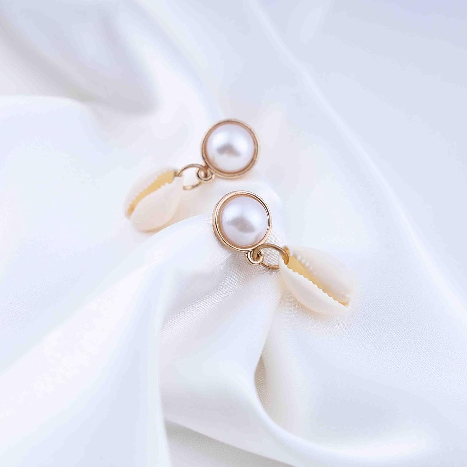 - Cowrie shell drop earrings.Item Details:Handmade Item.Size:As Shown.Color:Gold.Materials:Quality Alloy/Pearl.Location:Ear.Style:Boho/Vintage.