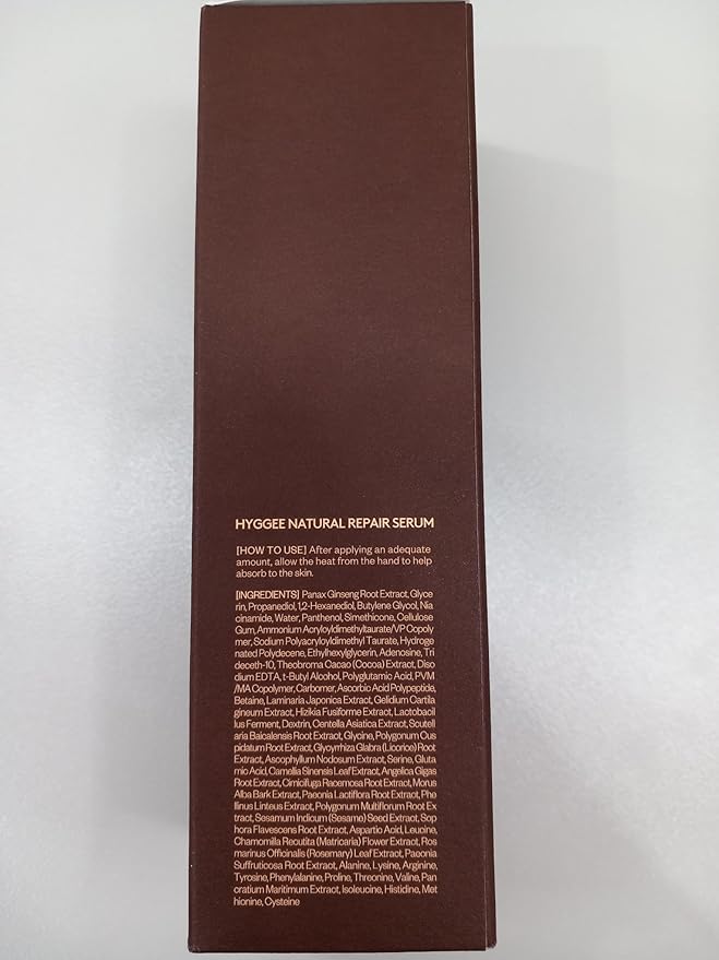 - FEEL THE GOODNESS OF PANAX GINSENG: Hyggee Natural Repair Serum contains is enriched with the power of Panax Ginseng Energy that replenishes the vitality. This highly moisturizing and nourishing serum filled with 66.7% of Panax ginseng extract instead of purified water offers an excellent antioxidant effect.