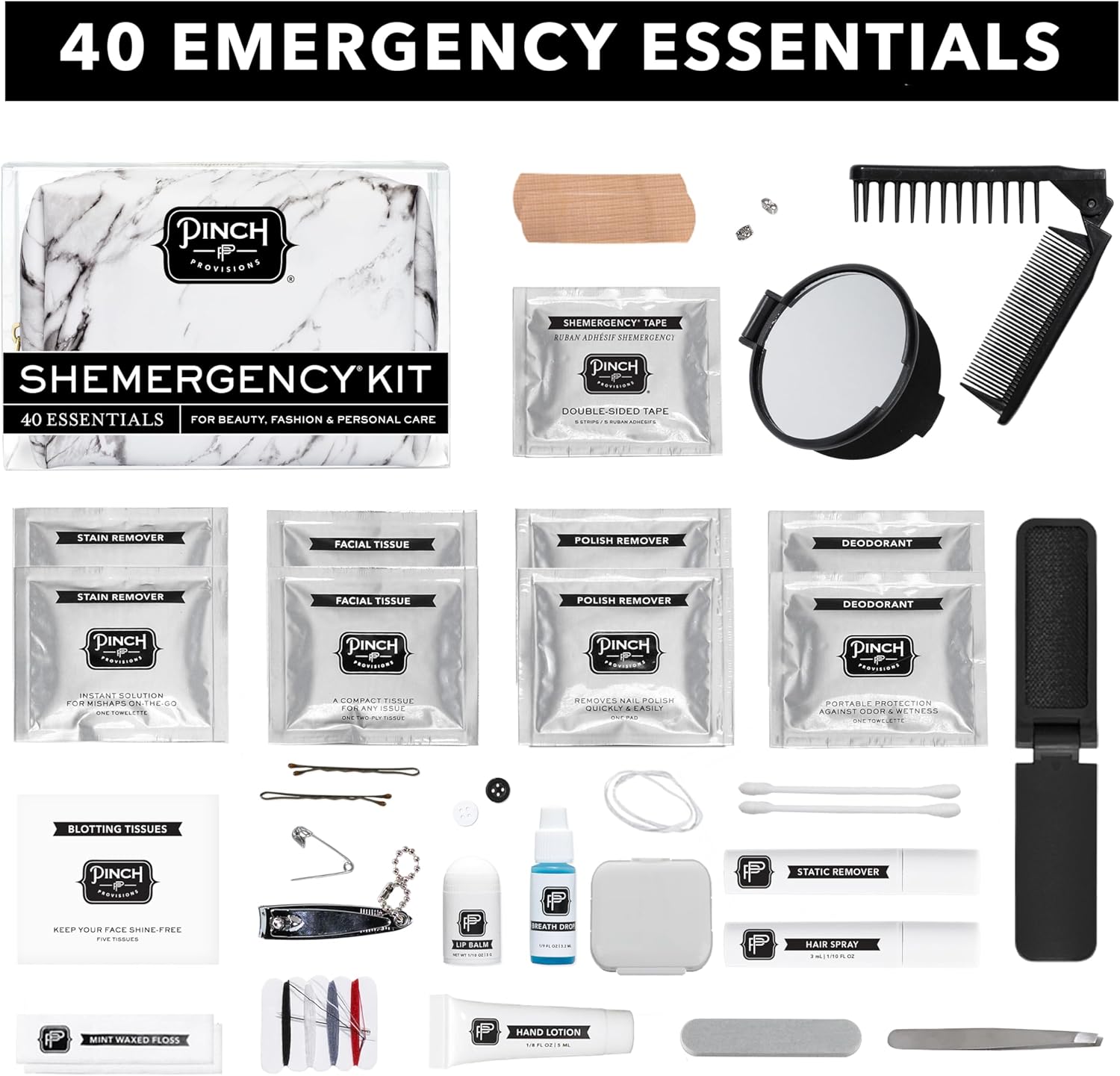 Pinch Provisions Shemergency Kit for Her, 40 Emergency Essential Items, Compact, Multi-Functional Pouch, Gift for Women, Birthday, Bachelorette Parties, and More!