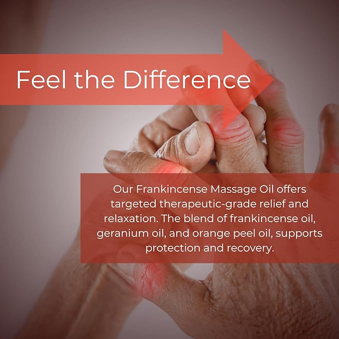 - JOINT PROTECTION - Our Massage Oil's key ingredient, Frankincense Oil, protects you from cartilage breakdown and helps maintain the protective cushion by your knees, hips and shoulders.