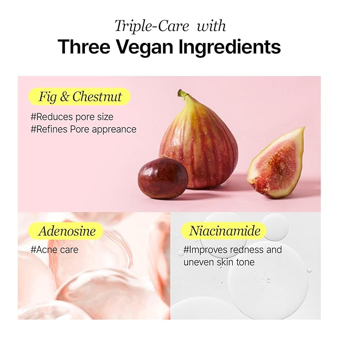 - Contains 8 plant-based extracts including fig and chestnut to control sebum, reduce excess oil and tighten sagging pores.