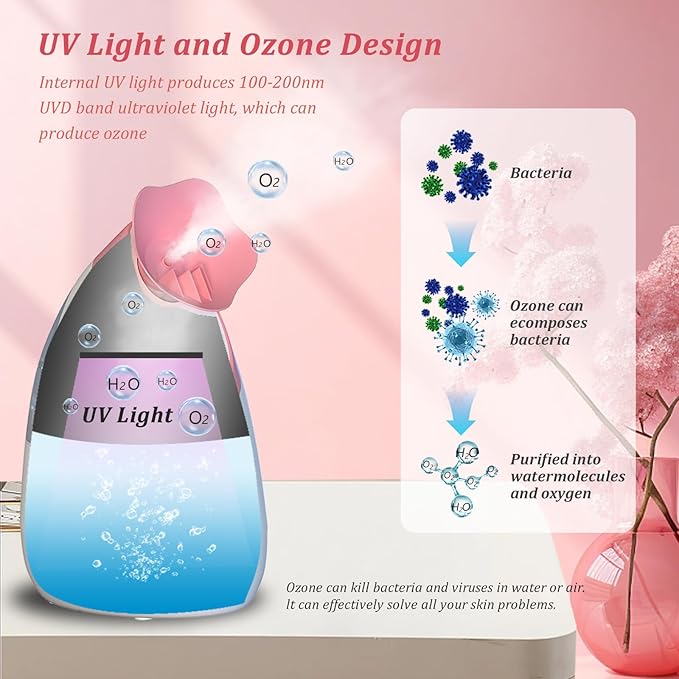 - 【Multifunctio】:Ionic facial steamer will spray hot steammoves the skin residues, then moisturize immediately .Deep penetration, delicate skin.Promote skin metabolism, activates cell vitality. Can reduces acne, weakens pigmented spots and smooth.removes congestion in the sinuses, also be used as a room humidifier, help you to tends to get with the dry air in the house.A Relaxing Spa Treatment at Home. Treat your body to a rejuvenating experience that will leave you feeling refreshed, energized, a