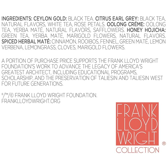 - BEAUTIFULLY PACKAGED TEAS in an exclusive collaboration celebrating design, connection, and creativity. The open lid reveals a detailed tasting menu and our teas. Our gift-ready presentation makes the perfect tea lovers present or addition to a visionary collection.