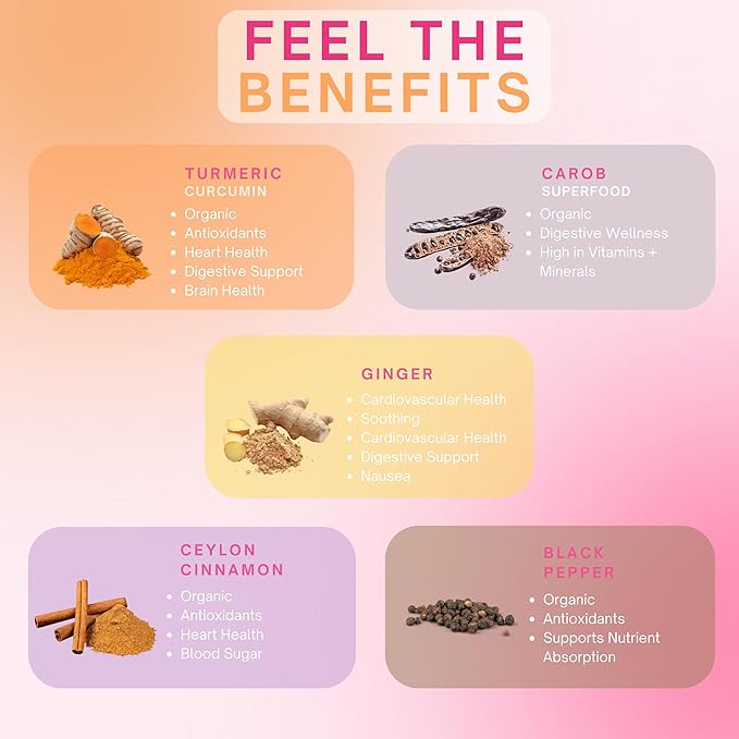 - Ginger Golden Milk : Savor our vegan, gluten-free blend reminiscent of spicy chai. With turmeric, black pepper, ginger, cinnamon, and a hint of pumpkin spice, it's an elixir of delicious indulgence.