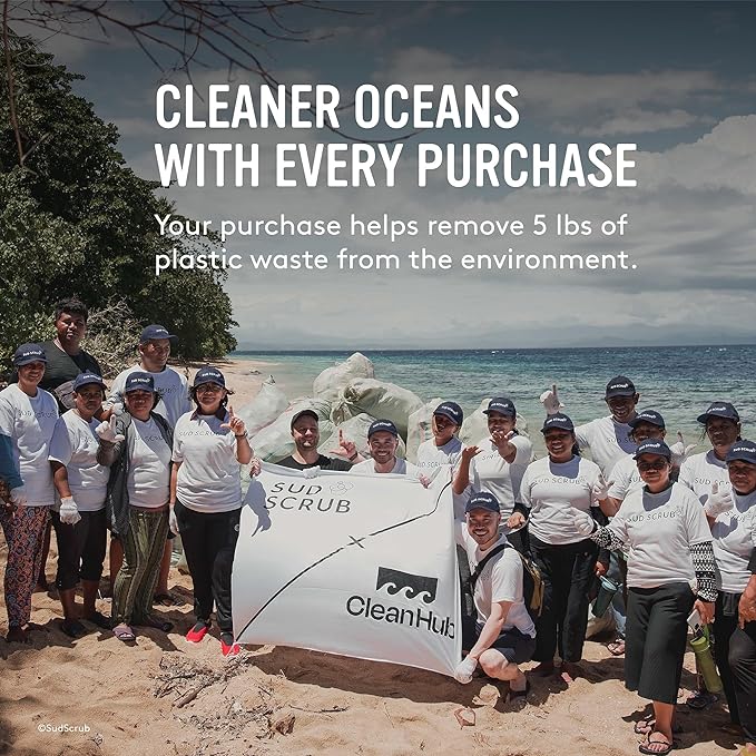 - ECO-FRIENDLY - This antimicrobial body scrubber is 100% plastic-free and recyclable. For every Sud Scrub you purchase, 5 lbs of plastic waste are collected and removed from the environment.