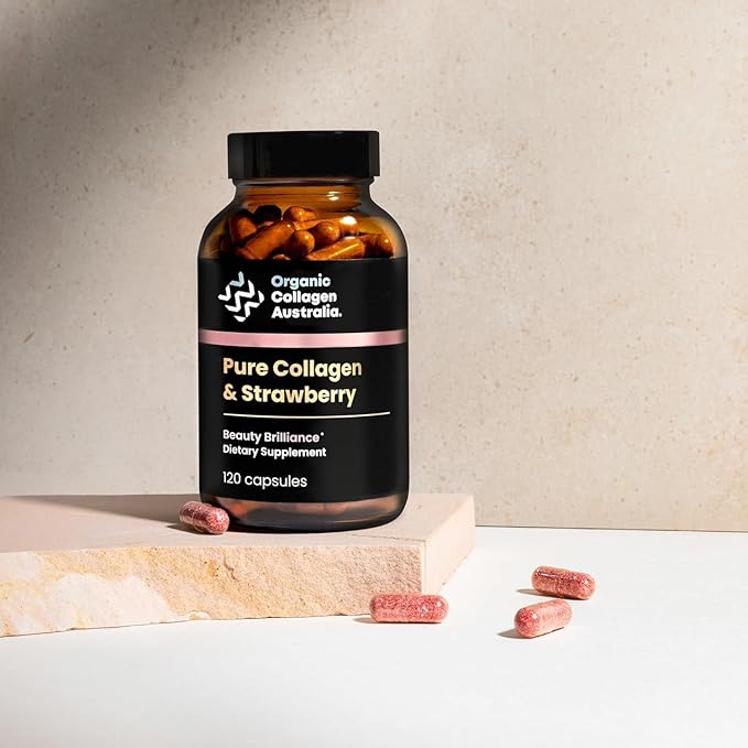 Organic Collagen Australia Beauty Brilliance Pure Collagen & Strawberry Capsules, 120 Count