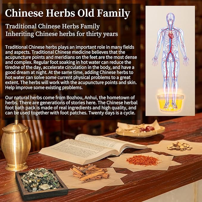 - How to Use: Choose a foot soak tub or bsain, take out the footbath bag and put it into the basin, and soak it in 100℃ hot water (about 2000ml) for 5 minutes. You can stir it during the process to give full play to the effects of the herbs. Then pour cold water again to adjust the water temperature, put your feet in the basin and soak them for 20 minutes.