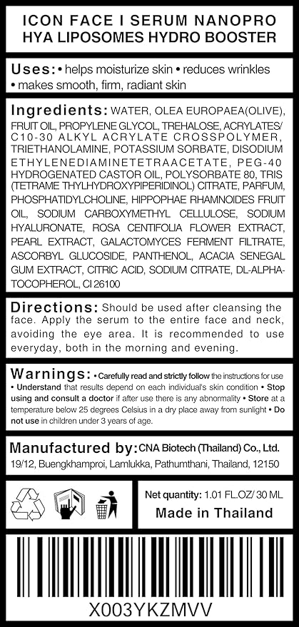 iCon Face iSerum - 20x Nano Hyaluronic Acid Ageless Hydro Booster Serum, 12Hour Moisturizing & Collagen Production, Age Defying, Natural Arbutin, Pearl Extract, 30ml