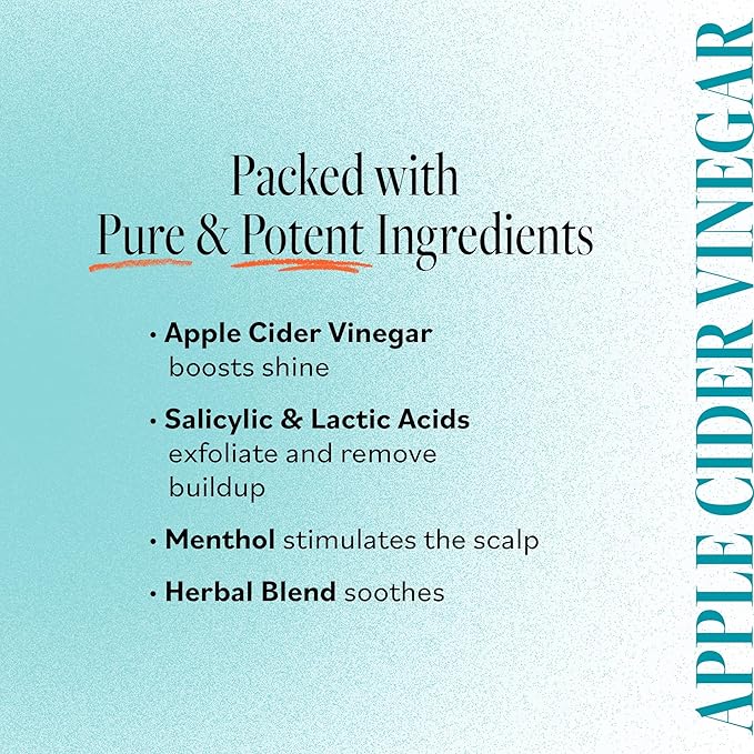 - Exfoliate! Gently loosens build-up, impurities and debris found on hair and scalp. Apple Cider Vinegar gently cleanses impurities and helps close cuticles, but by blending with other refreshing ingredients, has a lovely spa-like fragrance. Doesn't smell like vinegar.